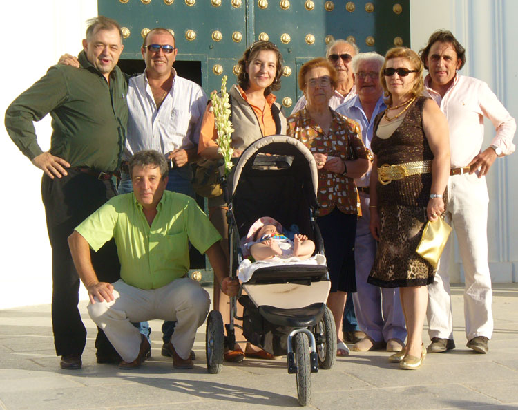 Los Boixo de Almonte acompañan a Athenea Camino Boixo, que acaba de ser presentada a la Virgen del Rocío, en Octubre 2006, implorando por su salud. La niña porta ya unas flores del Altar, regalo del Mayordomo del Santuario, y buen amigo de los Boixo residentes en el Rocío